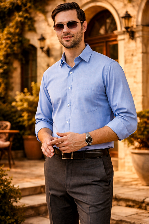 Steel Blue Filafil Formal Shirt for Men Smart Office Wear Style